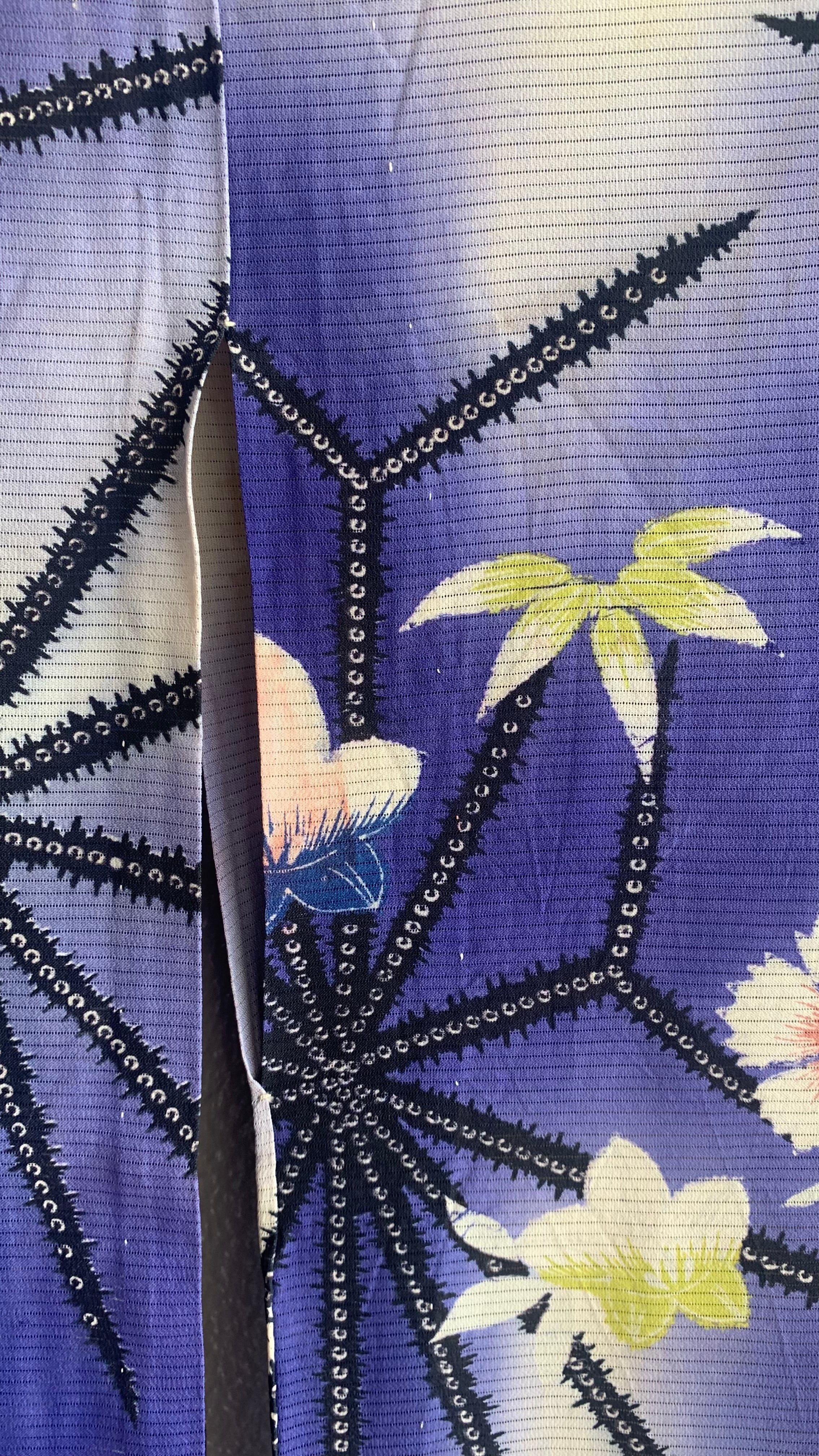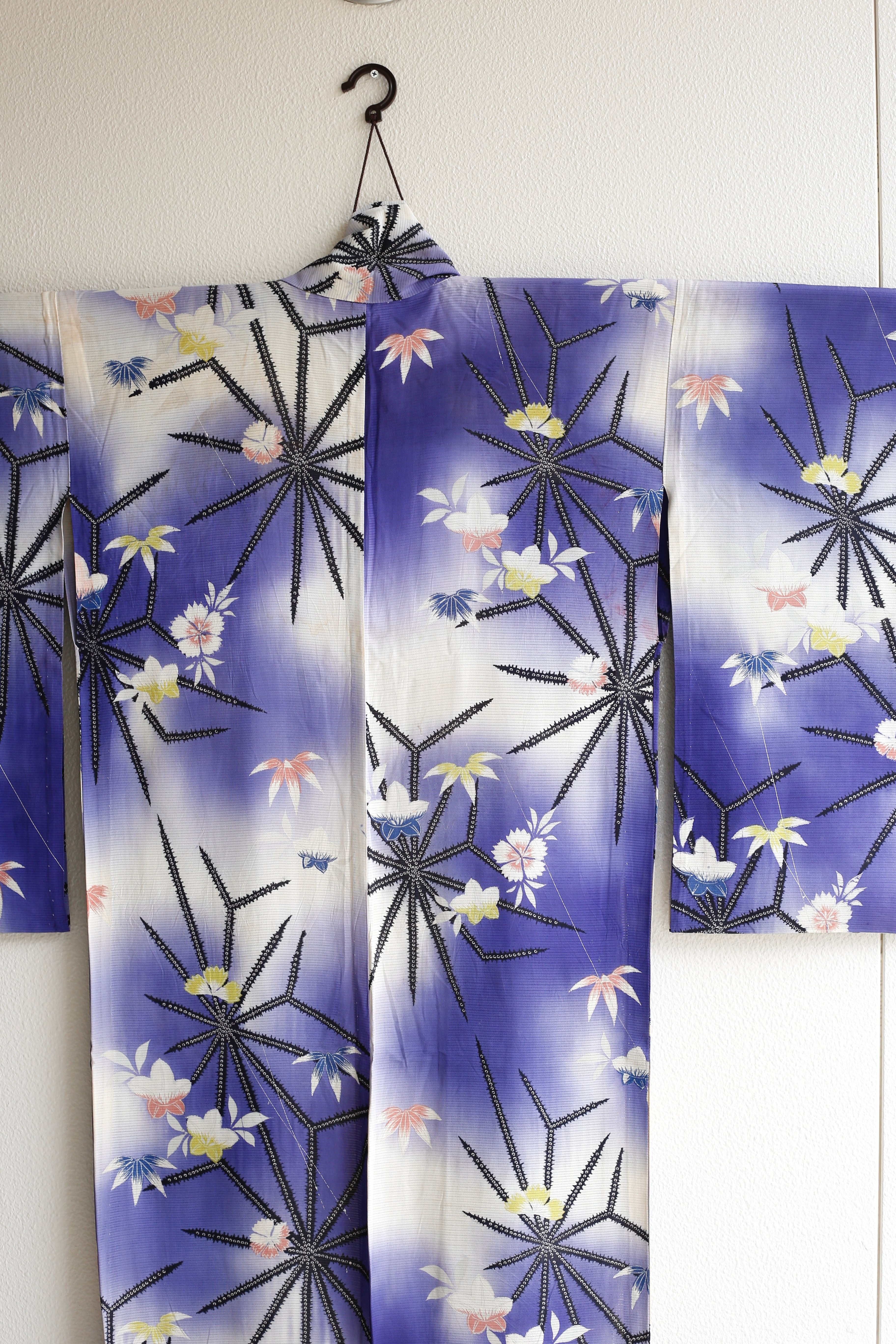 〈アンティーク夏着物〉紫ぼかし 麻の葉 秋の草花