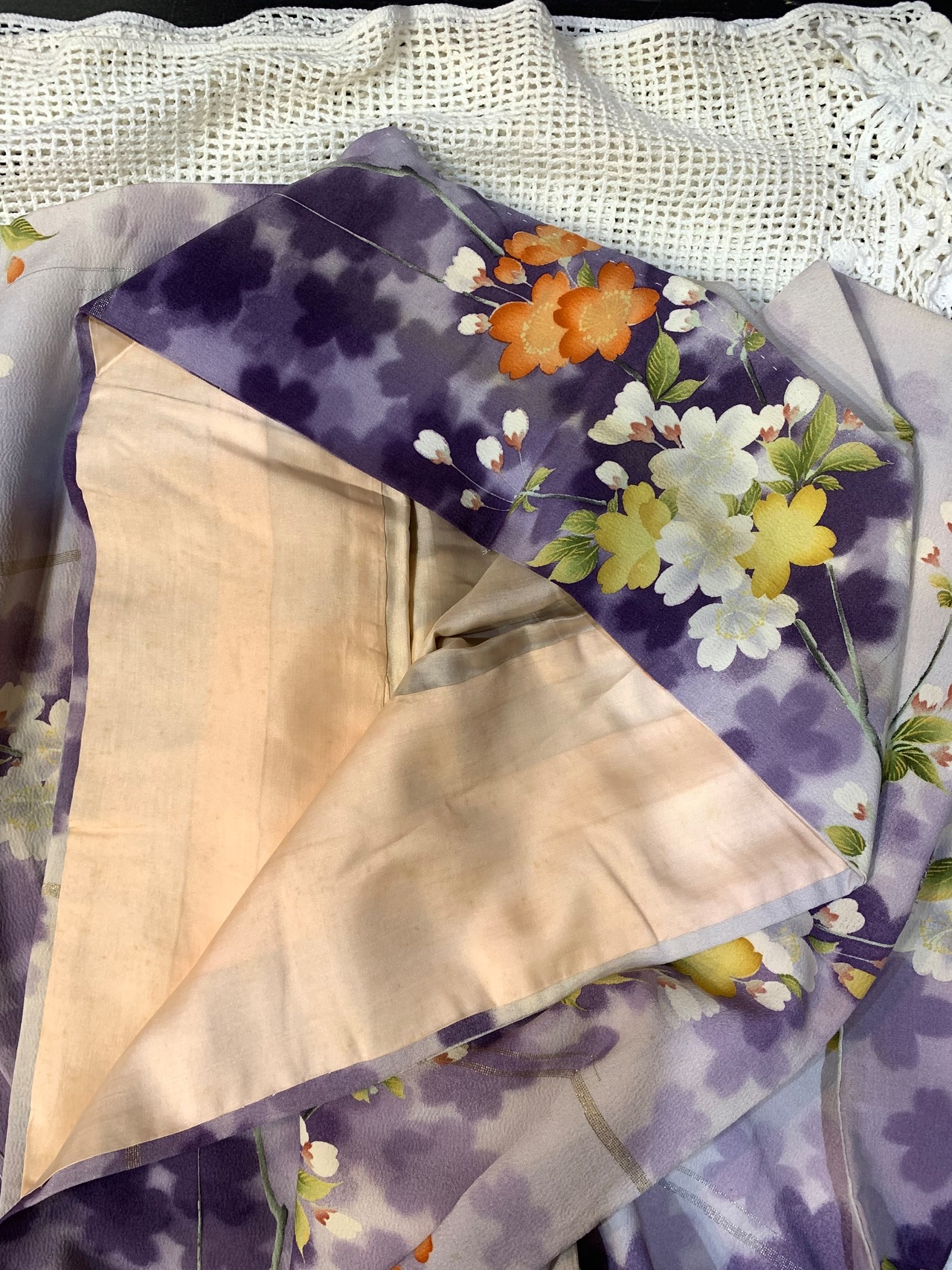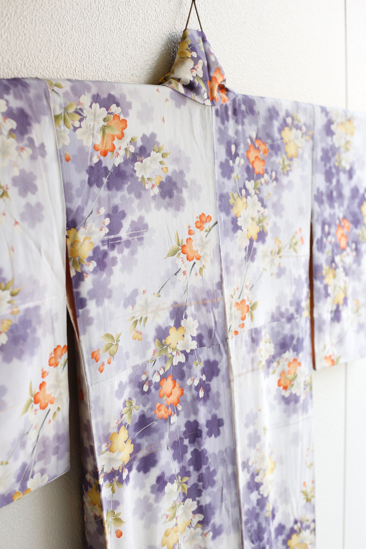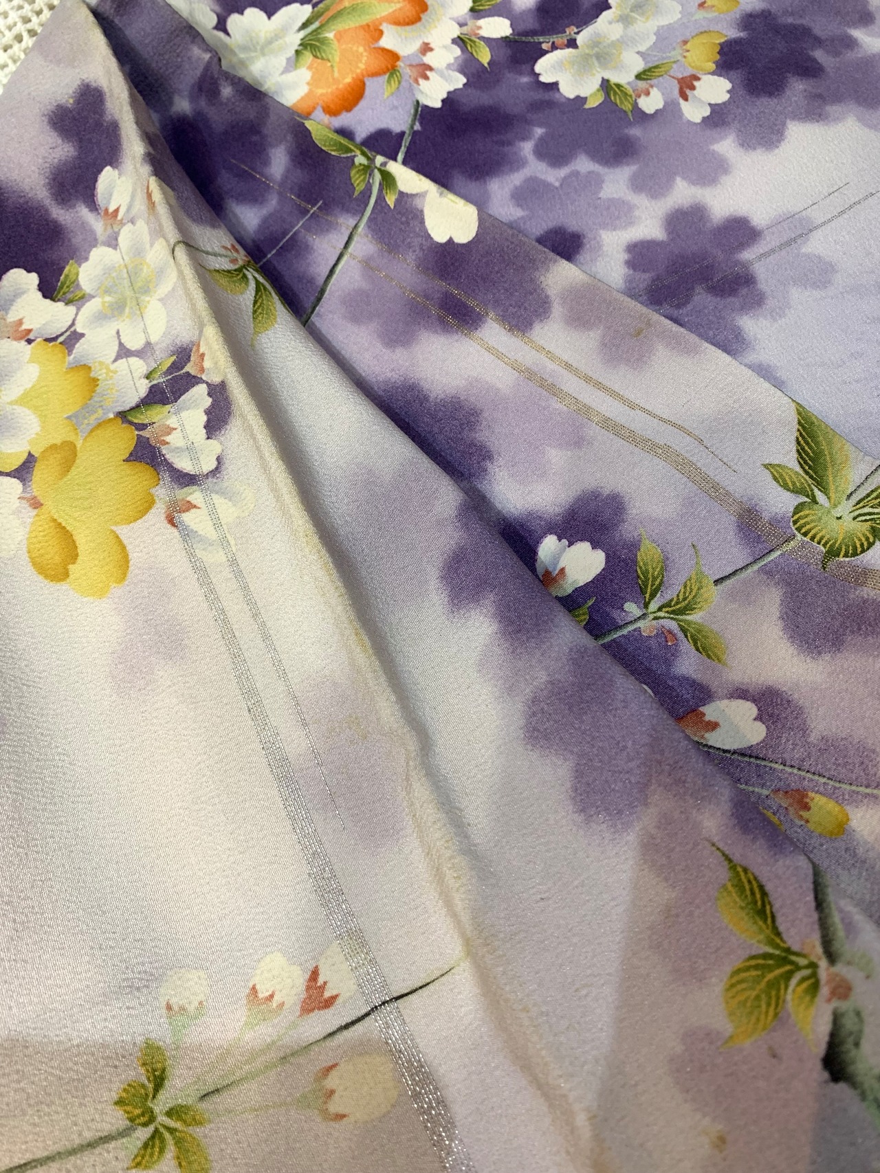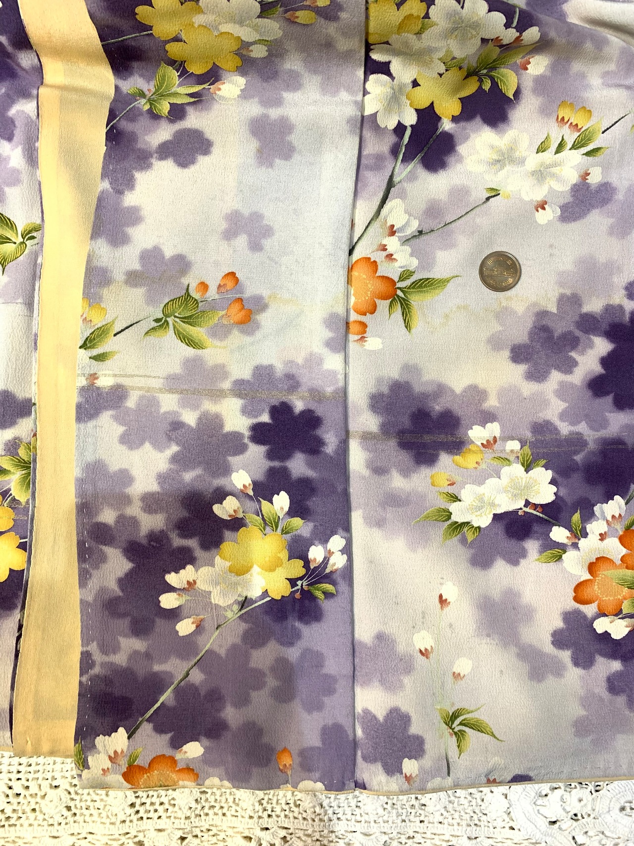 〈アンティーク着物〉桜 シルエット 銀通し 紫ぼかし 袷