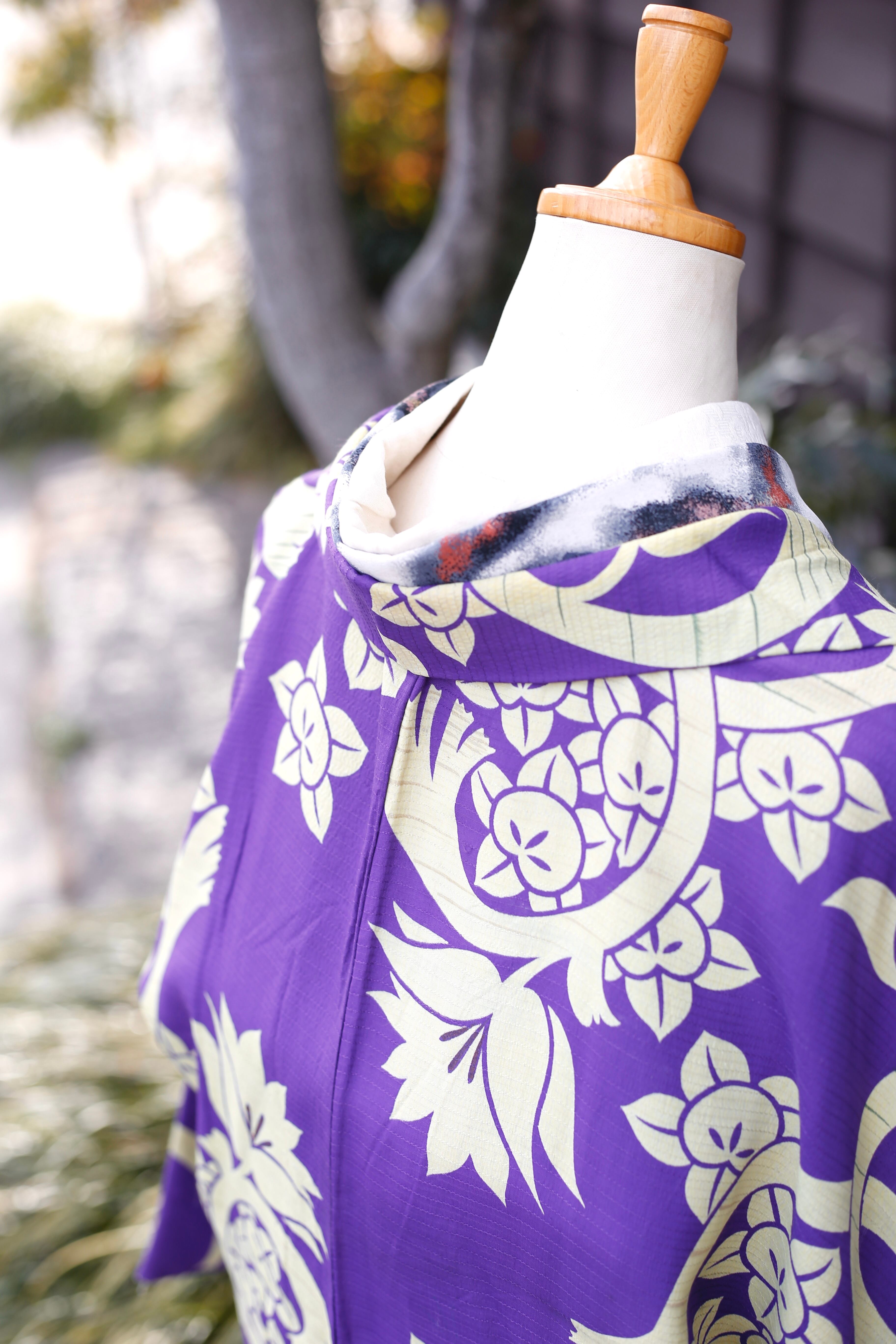 〈羽織〉橘 紫 レモンイエロー 羽裏に獅子