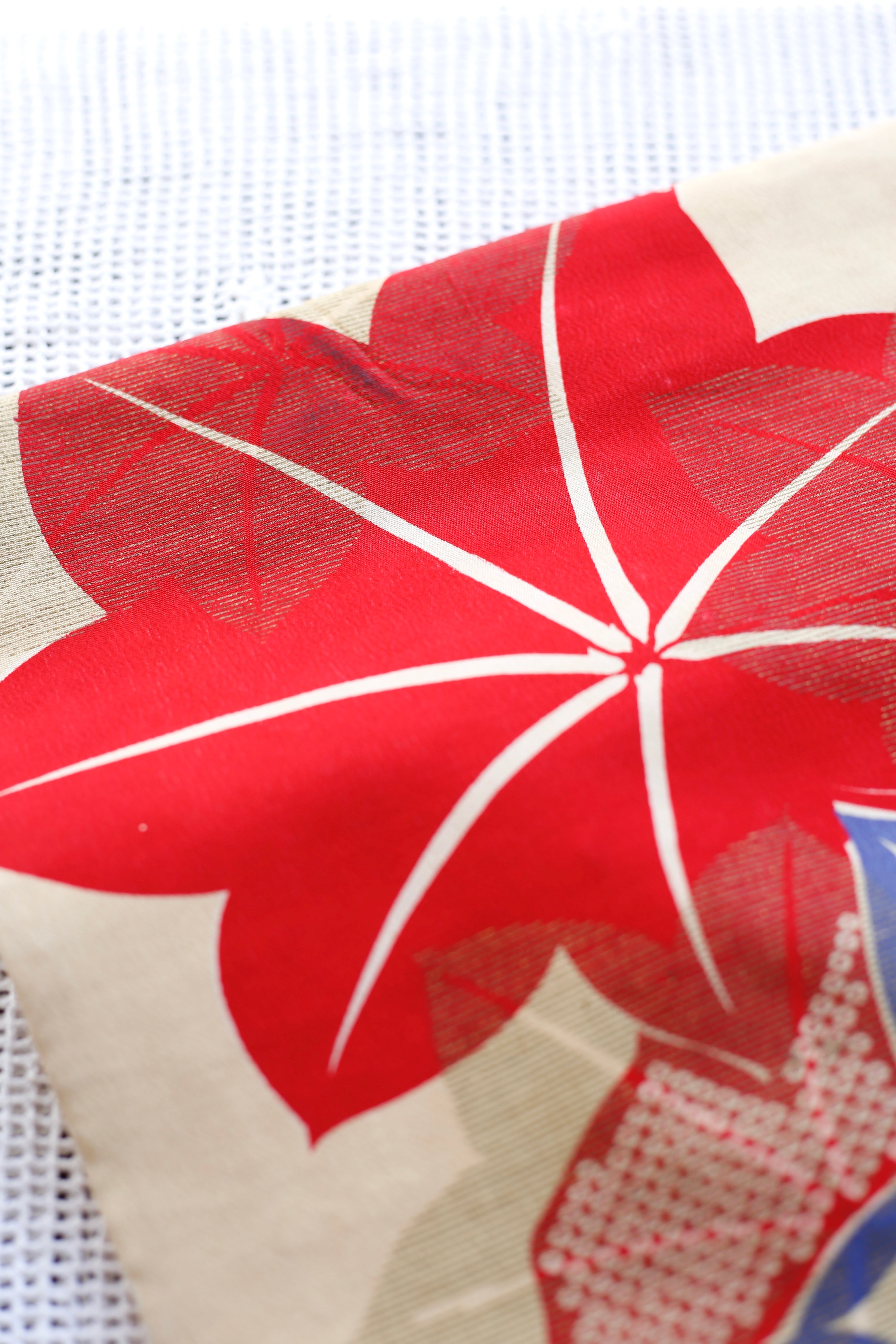 〈名古屋帯〉紅葉 秋柄 赤 青 アイボリー
