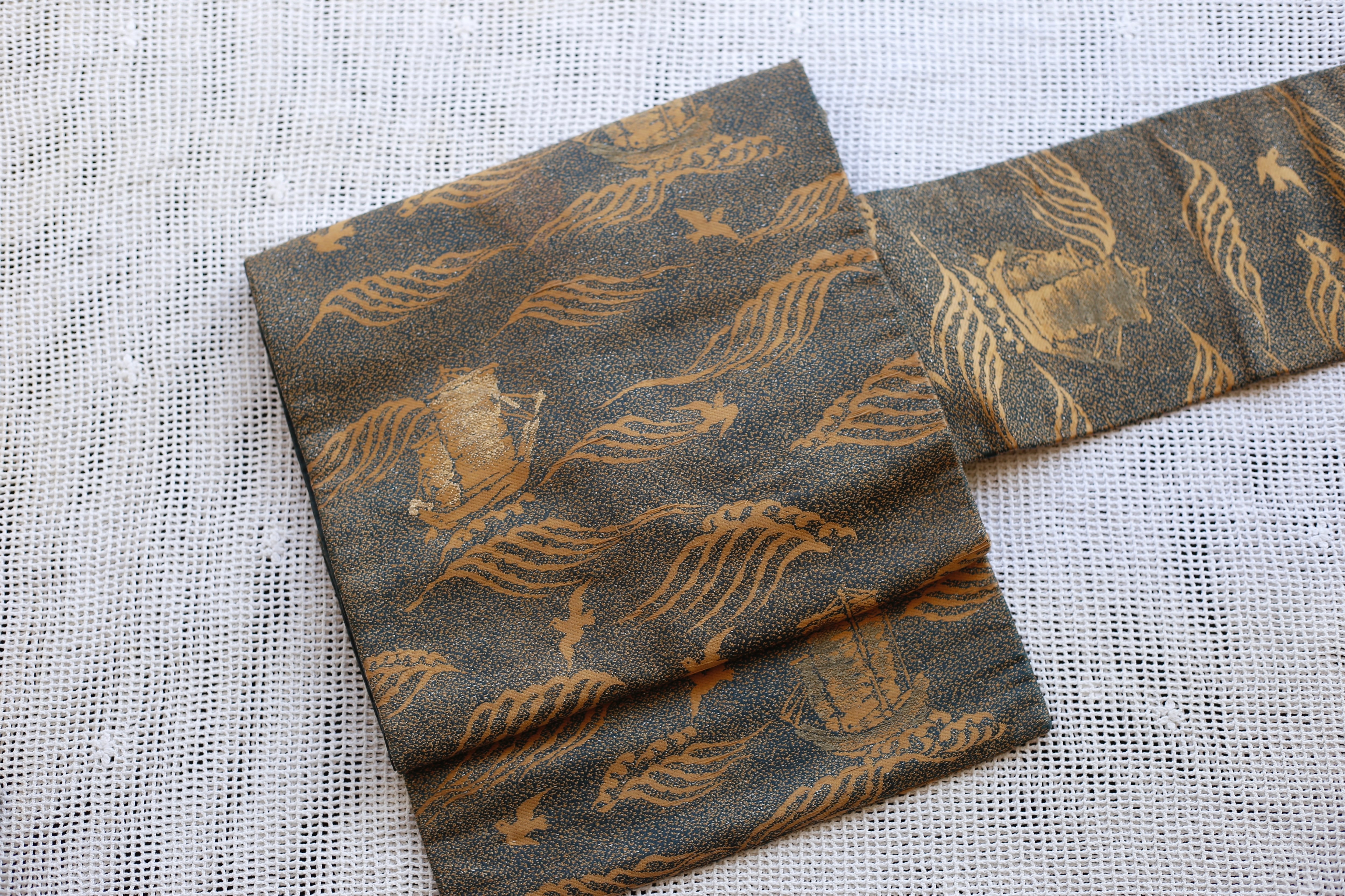 〈名古屋帯〉千鳥 ちどり 船 金糸
