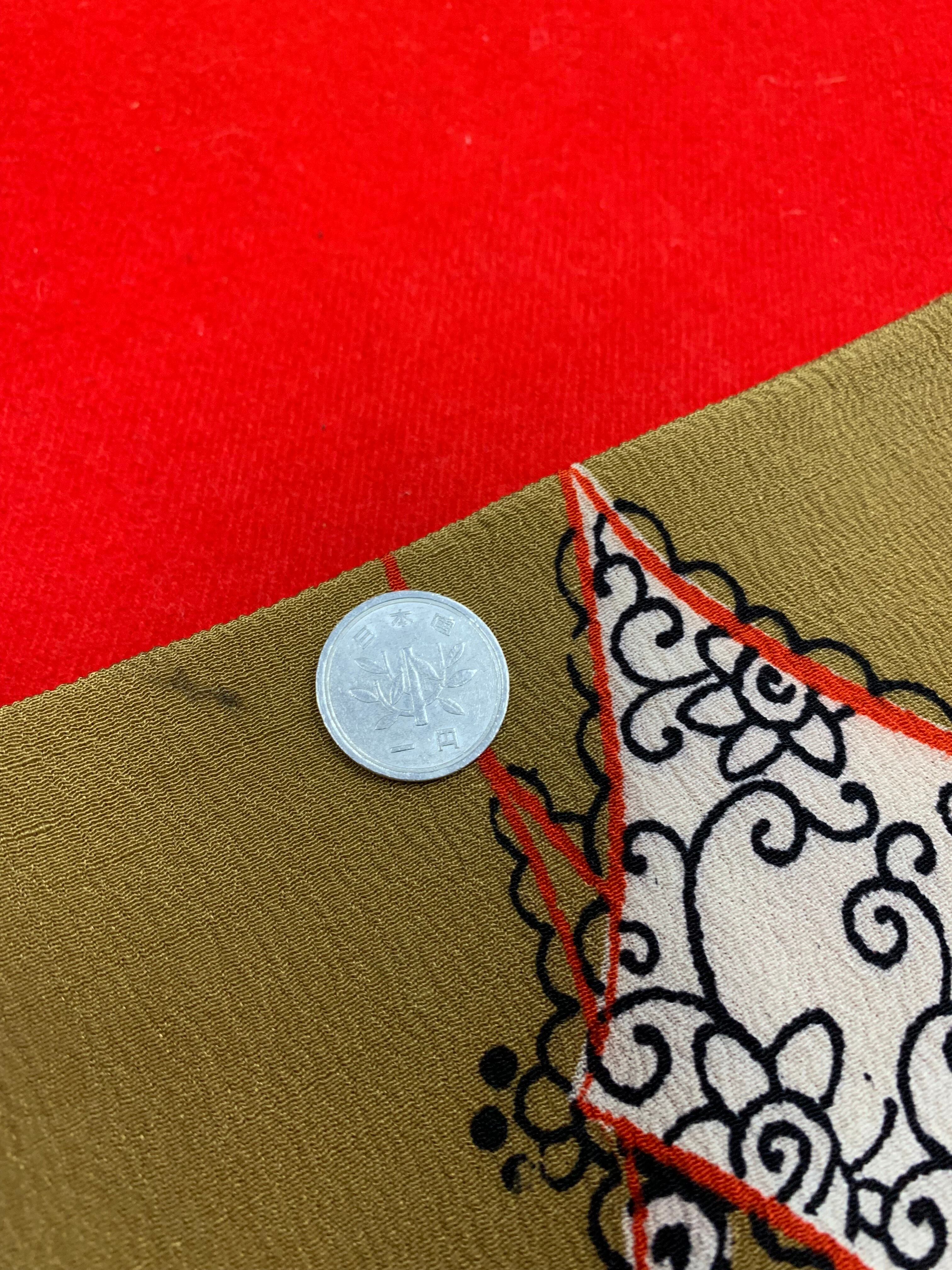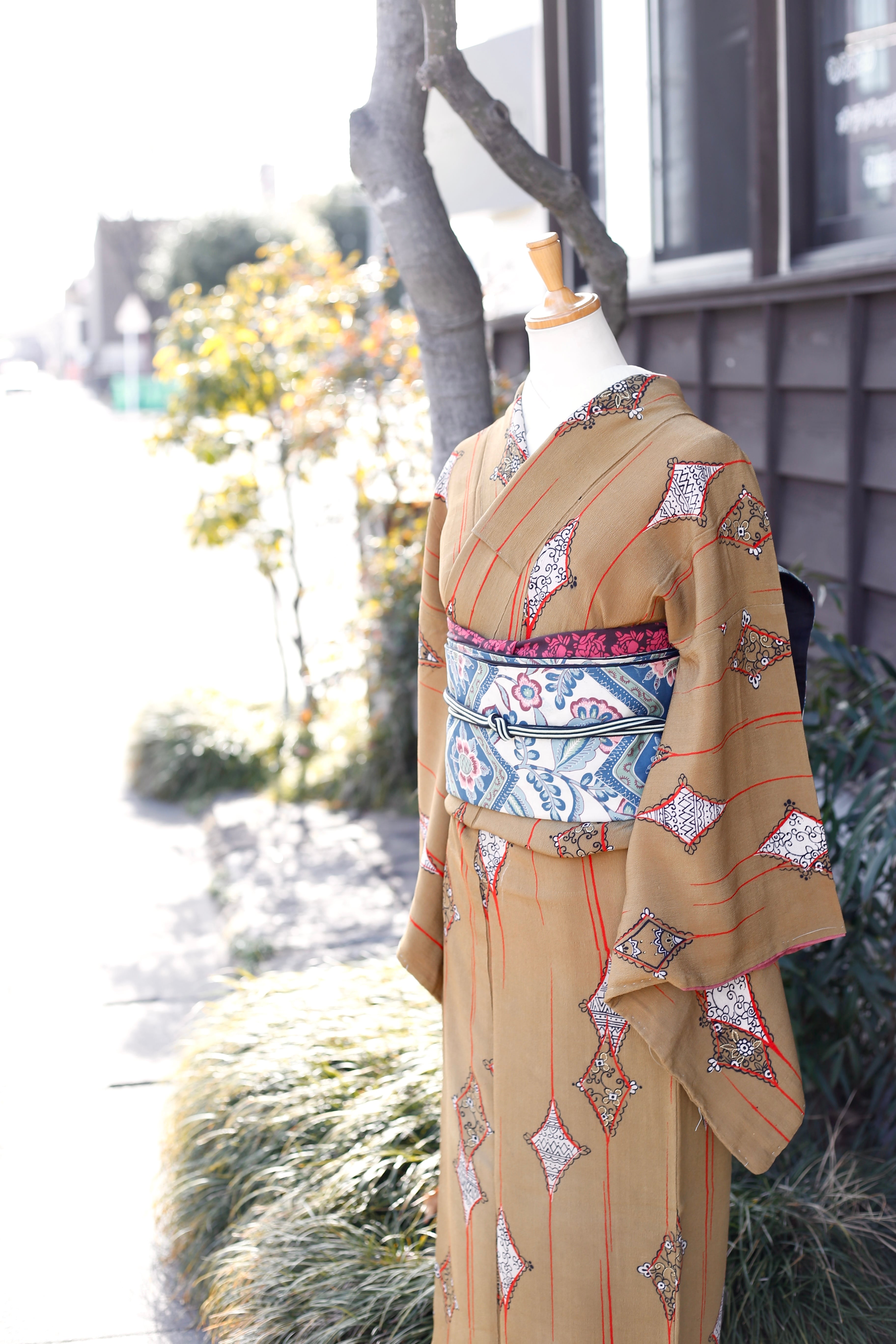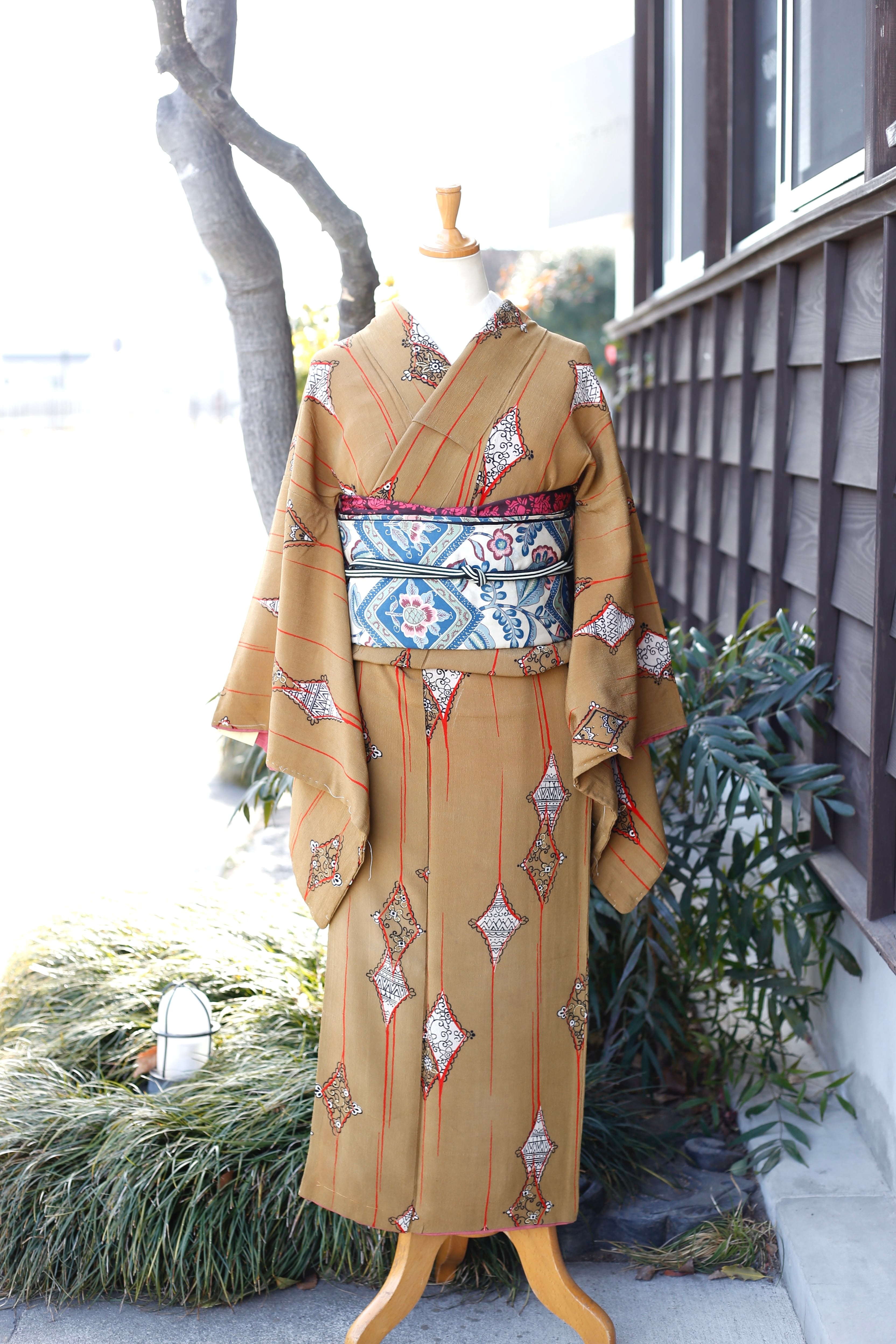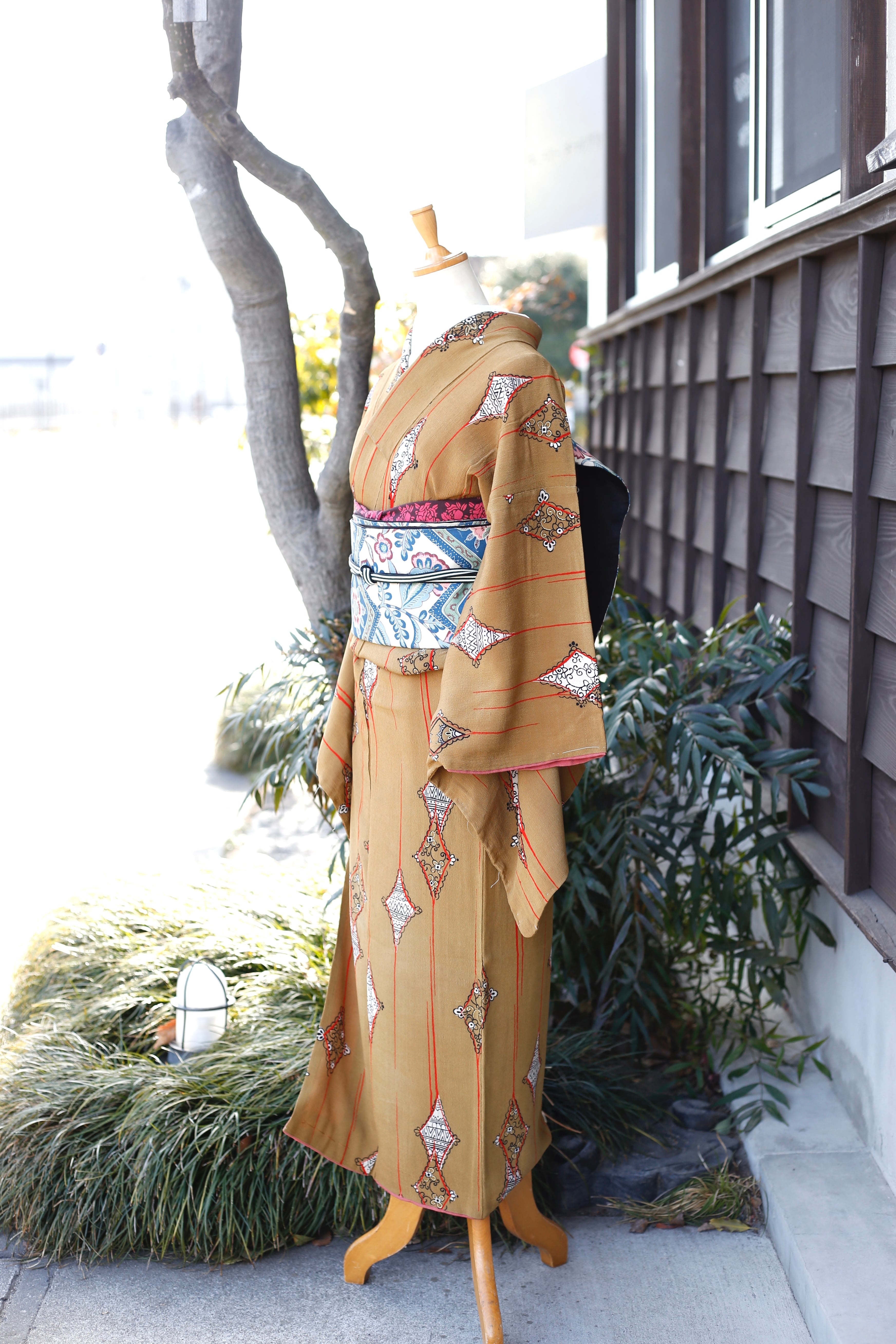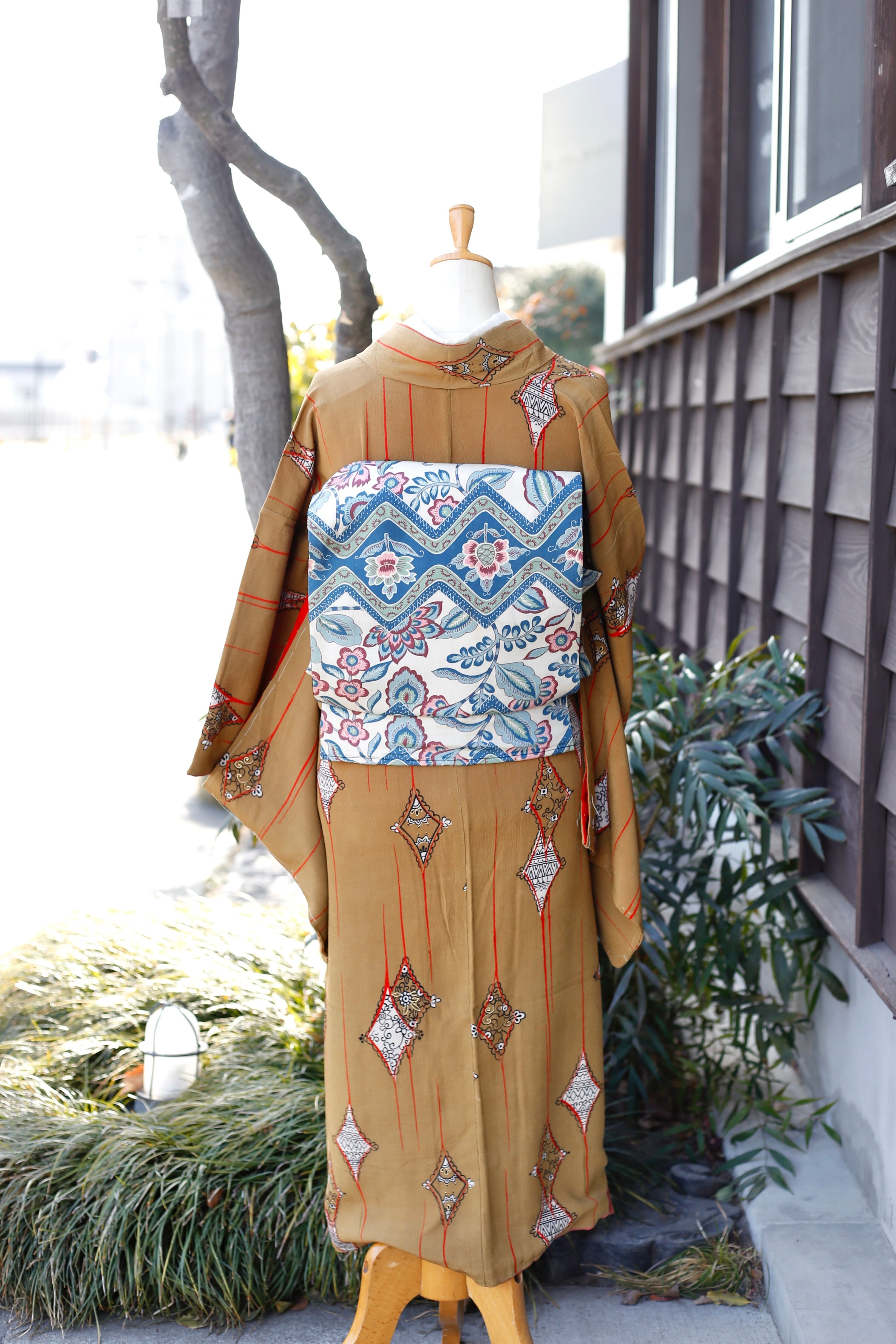 〈アンティーク着物〉からし色 ダイヤ 幾何学