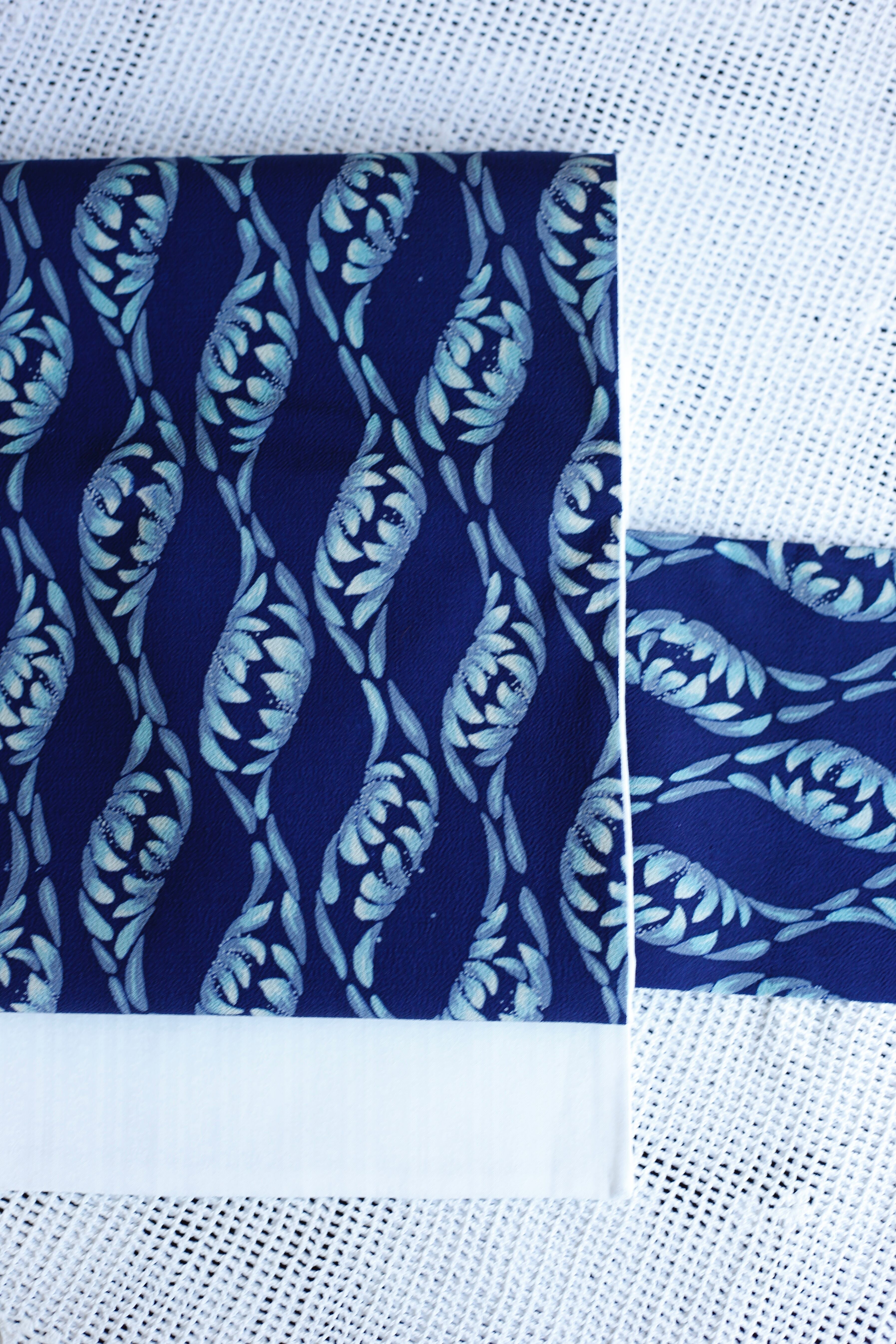 ・古布の部分(ブルー立涌)→正絹、白ファブリック→コットン