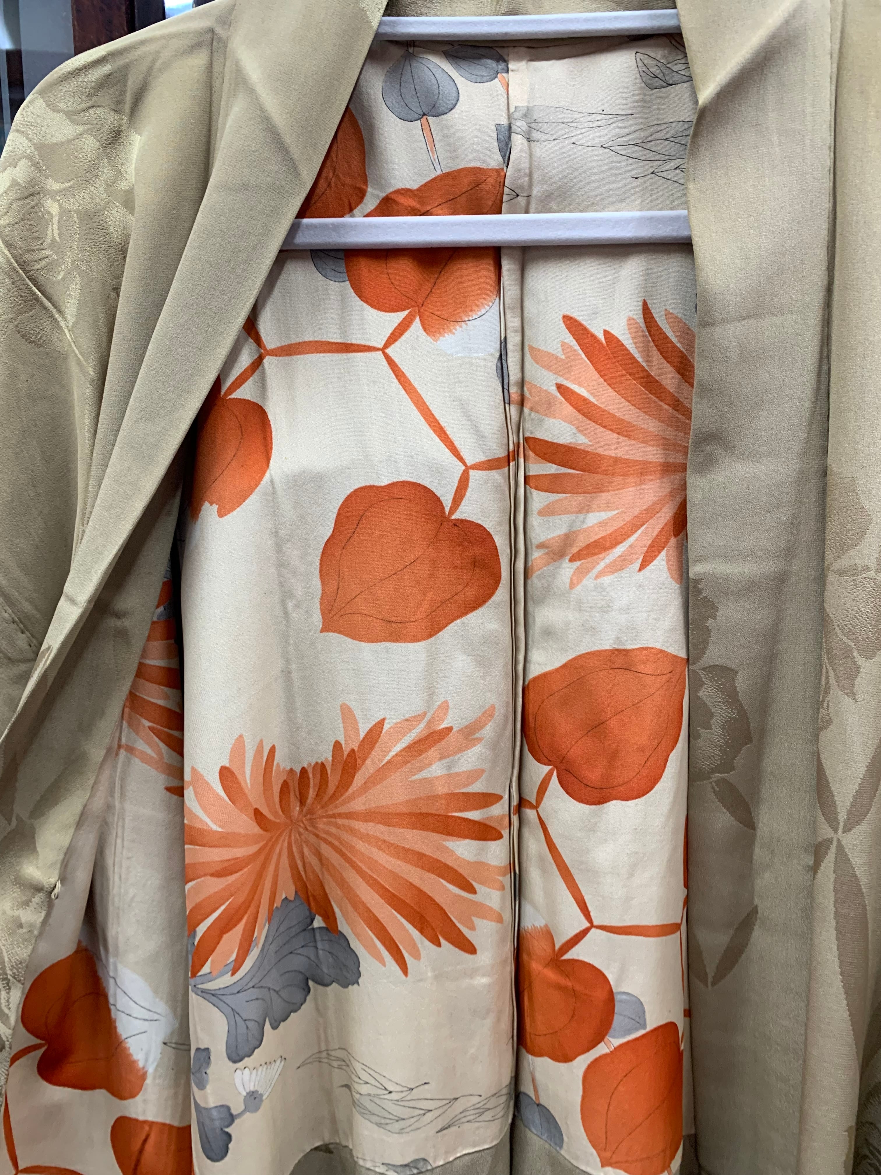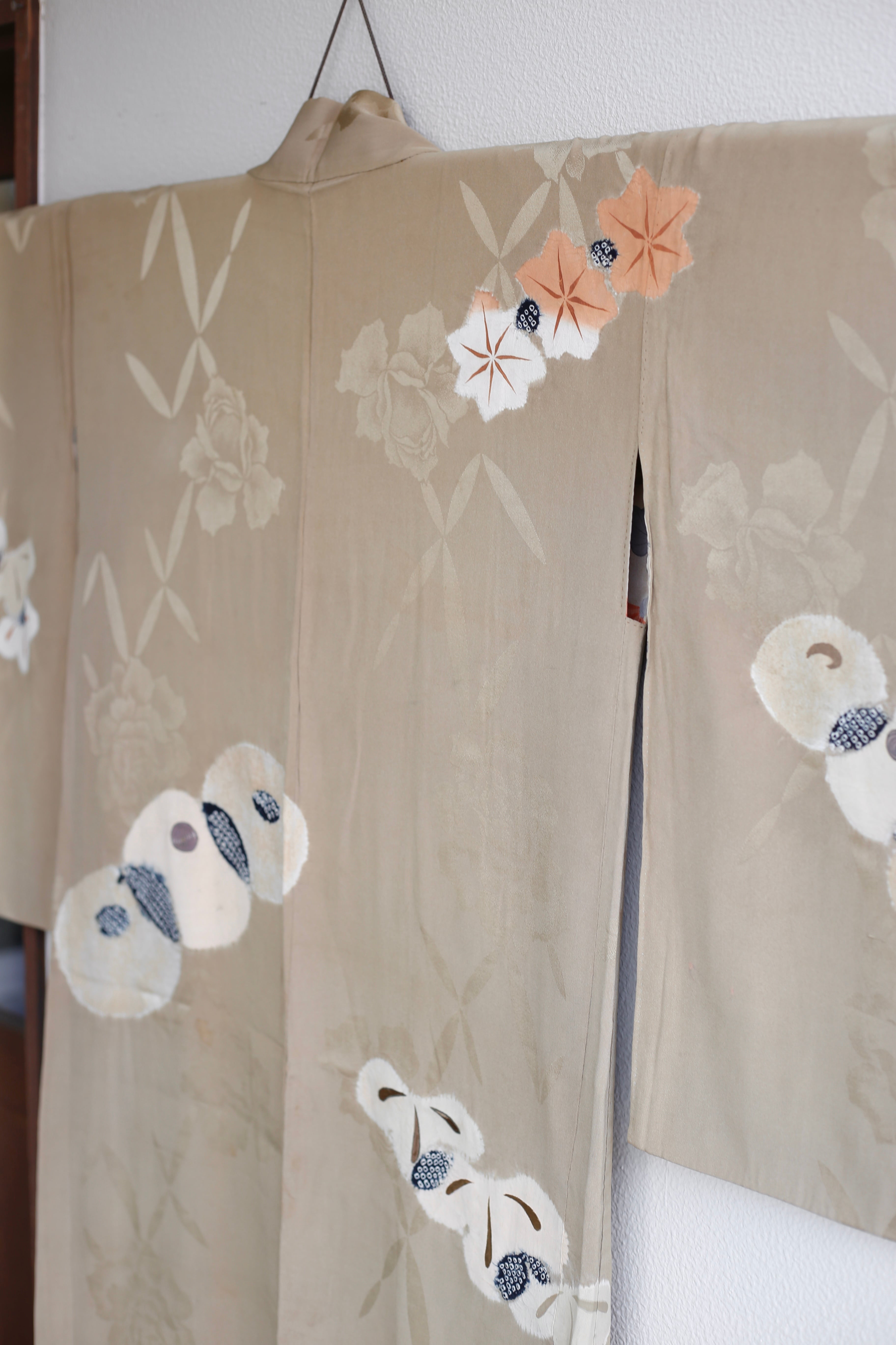 〈羽織〉菊 楓 秋柄 薔薇の地紋 ニュアンスカラー アイボリー